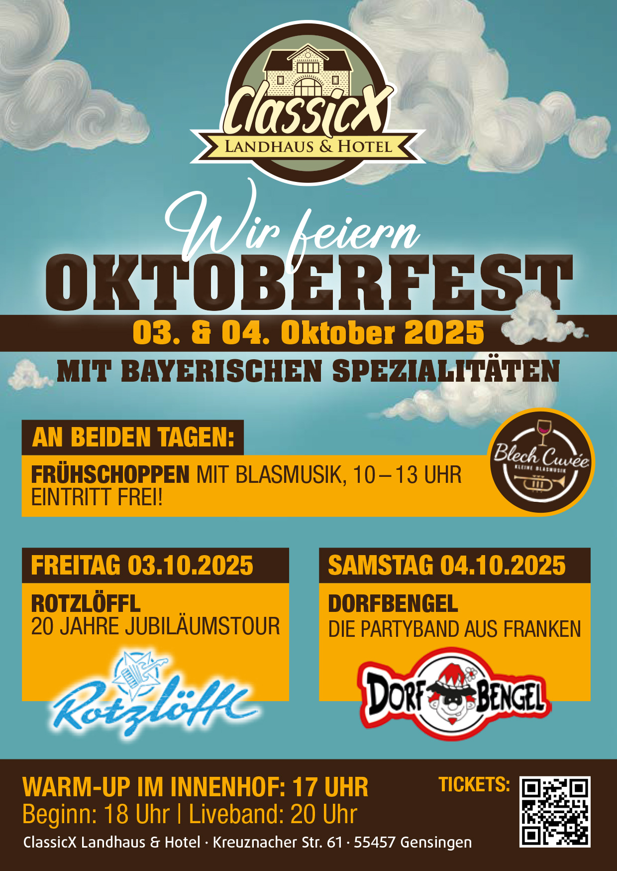 ClassicX Café & Restaurant im Nachbarort Grolsheim anbieten.